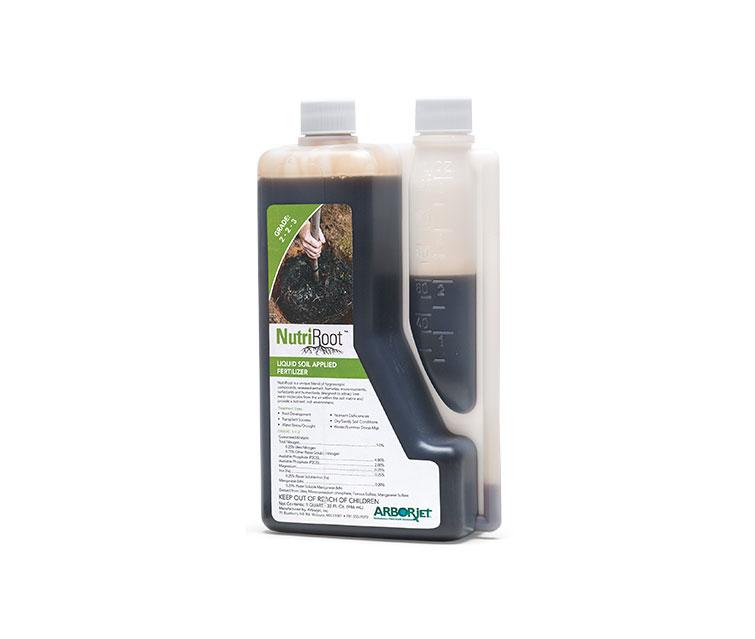 Arborjet NutriRoot Soil Applied Fertilizer has a unique blend of nutrients, seaweed extract, humic acid, surfactants, and humectants designed to increase root development and reduce water stress.