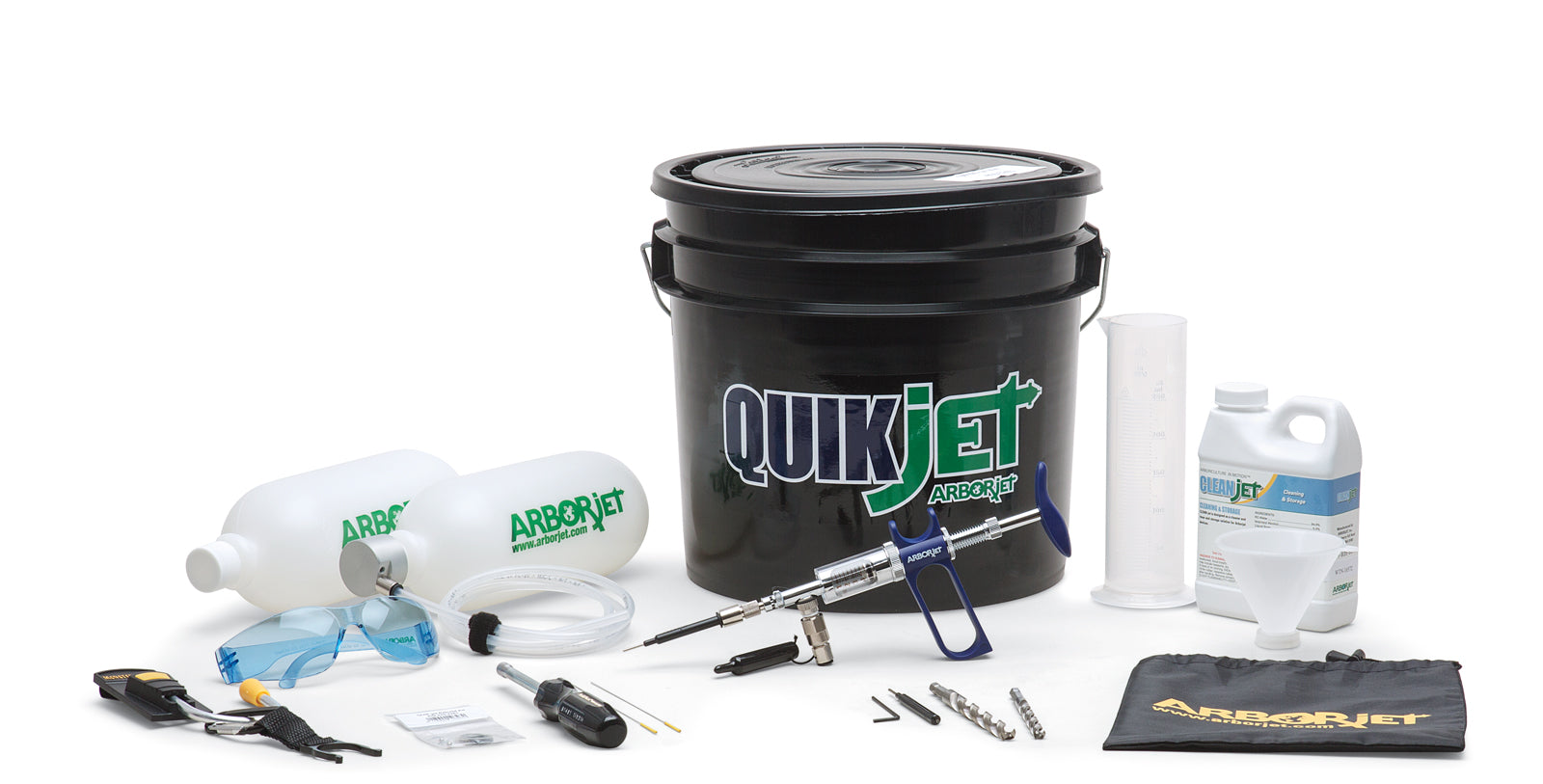 QUIK-jet’s speedy delivery with fast uptake trees allows the applicator to work effectively and profitably in a variety of situations. When there is ample moisture, low volume injections with the QUIK-jet are a breeze on ring porous oaks and diffuse porous maples. With high insect pest infestations on tracheid or evergreen trees, a customized reservoir system is used allowing hundreds of trees to be treated in a short period of time.