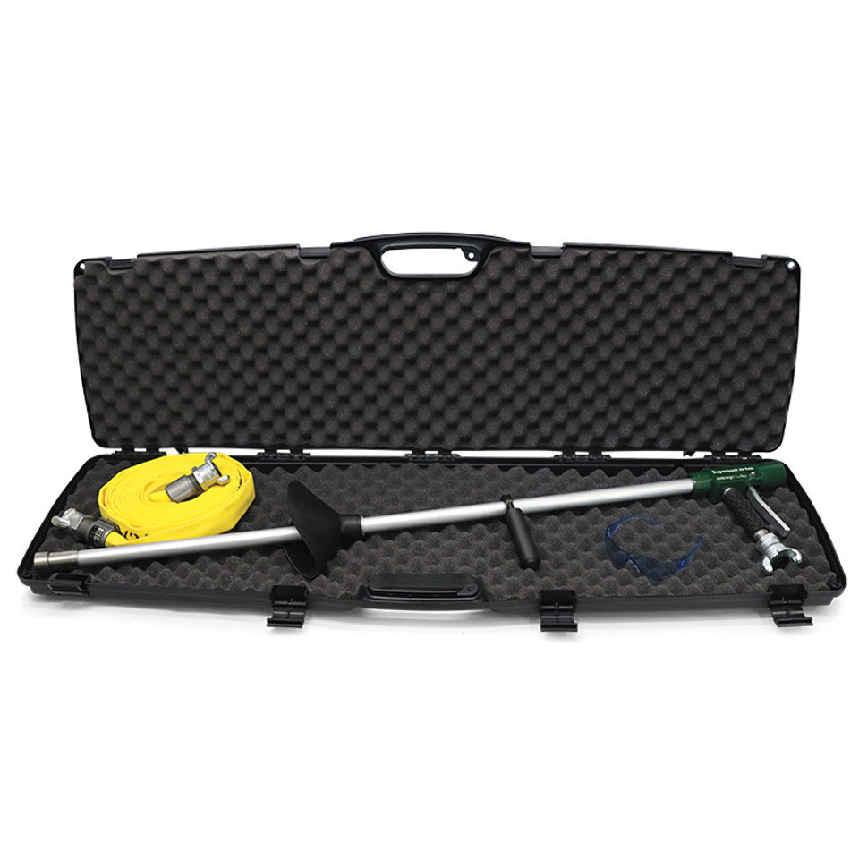 The Arborjet Supersonic Air Knife LT is the game-changing ultra-light pneumatic soil excavation tool for vertical mulching, radial trenching, bare-rooting, and more! Hook this baby up to an air compressor (not included) and you'll be breaking up the soil particles quickly and safely. With the Air Knife, you don't have to worry about causing damage to tree roots or buried utilities while digging in any type of soil. Once you've dug your hole, you can use the Supersonic Vacuum (sold separately running on the same compressor to remove the debris you've loosened.