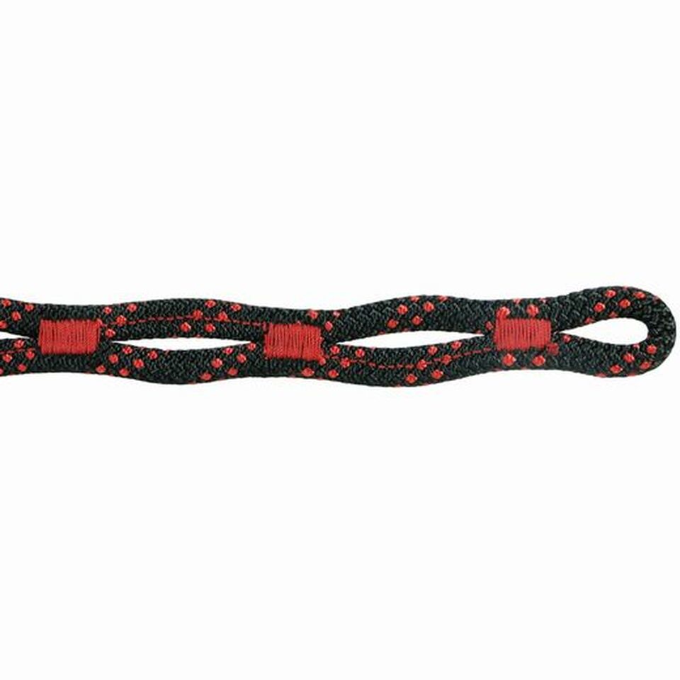 The one-and-only combination system of tube shaped ring, parallel sewn 8 mm polyamide rope as well as segment stitching makes for a strong, versatile and easy to use tool in everyday work situations. If you want to secure or block the choked sling, you just need to install a small binder into an open rope segment right in front of the ring. Climbing ropes can be fastened as lower anchor. This way you can for example install a lowering device for aerial rescue at any given place.