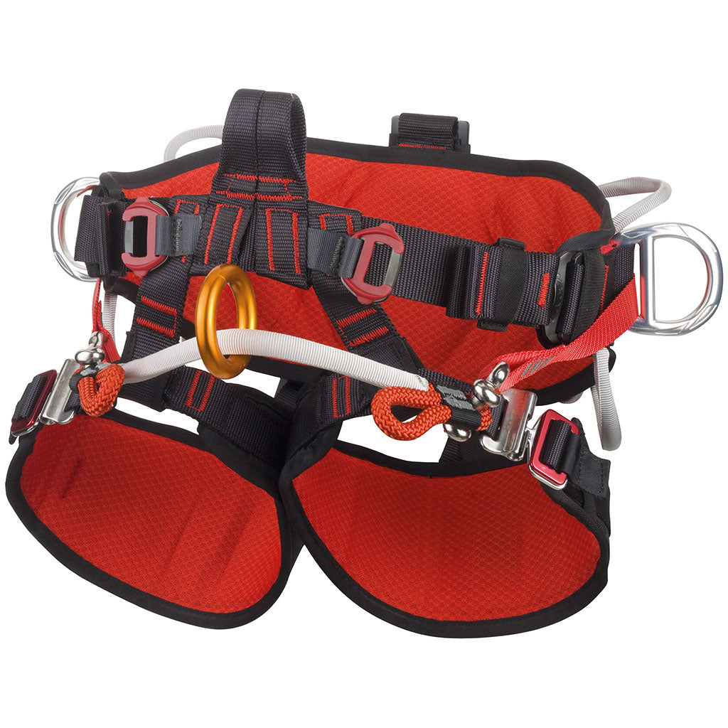 Patented ventral attachment features two loops: the upper loop is for attaching a chest harness and chest ascender and the lower loop for attaching lanyards and rope tools.