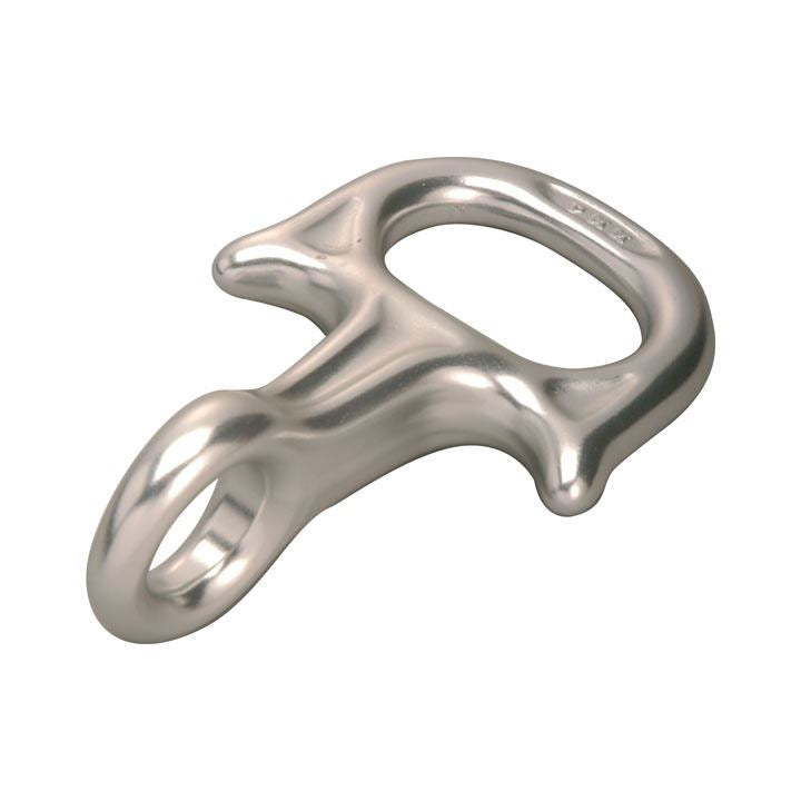 A figure of 8 with a twist. By turning the angle of alignment of the attachment hole and rope running hole by 90 degrees, the Anka allows proper orientation of the descender when used on a Centre or Industrial harness, i.e. when the belay loop is horizontally orientated (It sits vertically in most mountaineering style harnesses).