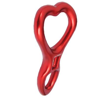 The DMM Cardiac Arrester is a clever, heart shaped figure of eight abseil device with two modes of friction; slick for fat ropes, less slick for skinny ropes