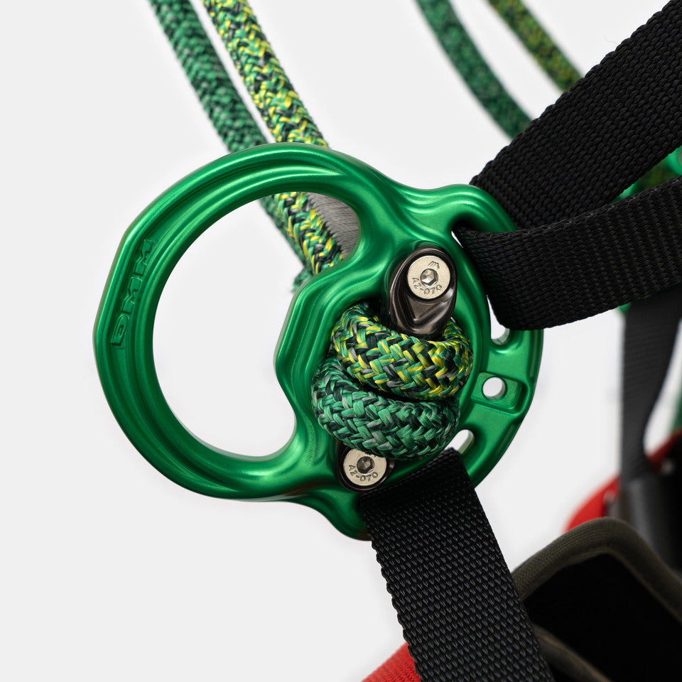 Harness attachments for suspension and work positioning according to EN813. Forward Ds are compatible with DMM connectors. Rope bridges work with a range of hardware including Anchor Rings, Ultra O, Axis Swivels or the Rigger Pulley. Webbing bridges work with Anchor Rings, AmericanO, Compact Shackle, and Axis Swivels.