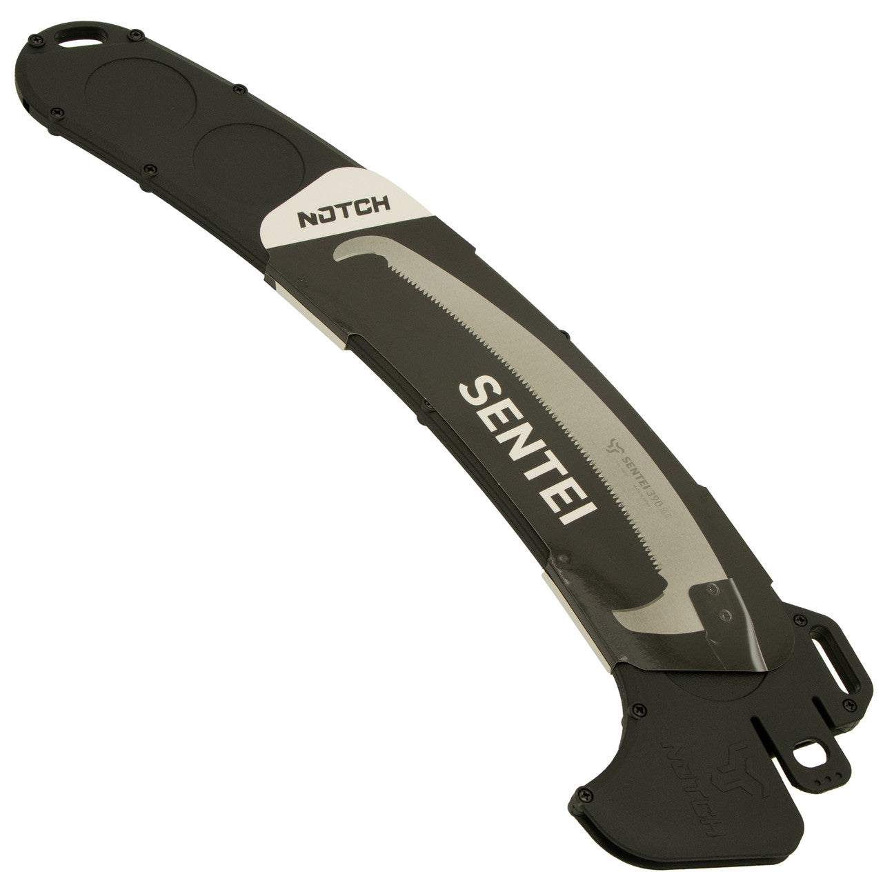 Notch Sentei Pole Saws feature an ovular profile with an ultra-lightweight aluminum construction. 4 Section saw extends 21' for maximum reach. Improved cam collar locks have rib lock protection. Quick-connect saw heads allow for fast, tool-less assembly. Notch finishes these incredible tools with abrasion-resistant, low-profile grips. Each Notch Sentei Pole Saw includes a Silky Hayauchi blade. This 15-2/5-inch long blade is hard chrome-plated for durability and corrosion resistance. Notch also includes a custom-fit protective scabbard to keep the blade safe and sharp. These saws also accept a Silky Ibuki blade. Notch Sentei Pole Saw make quick work of low-hanging cuts. Their low weight allows for maximum maneuverability during use. The Silky Hayauchi curved blade has 5-1/2 teeth per inch for maximum cutting efficiency. Low-profile grips enhance both comfort and control during use. Once you finish the job, these saws collapse in length to only eight feet for easy storage! These saws offer maximum efficiency and reach. Their rigid ovular profile makes them incredibly durable, yet keeps their weight low. Notch covers these tools with a limited lifetime warranty.