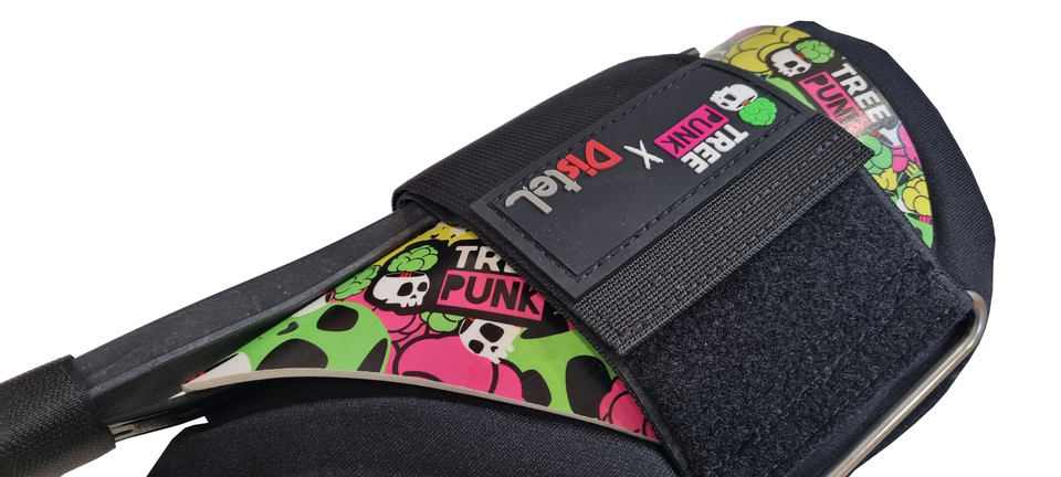 The most punk spikes you can climb with. Tree Punk have teamed up with Distel to bring you the most colorful climbing spurs out there. Includes tree gaffs, extra-wide calf straps, and traditional lower straps.
